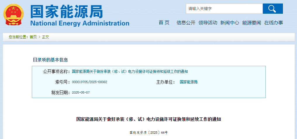 《承装(修、试)电力设施许可证管理办法》(国家发展改革委2025年第30号令,以下简称《办法》)于2025年7月1日起施行,为做好许可证换领和过渡期内延续工作,确保《办法》有序实施,现就有关事项通知如下。